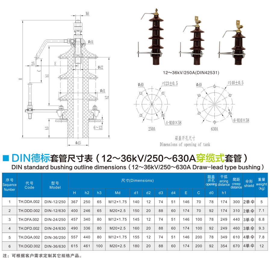 12~36kV/250~630A cable-piercing bushing