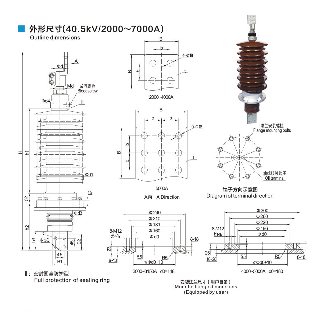 鋁法蘭瓷套管40.5kV/2000~7000A穿桿式套管