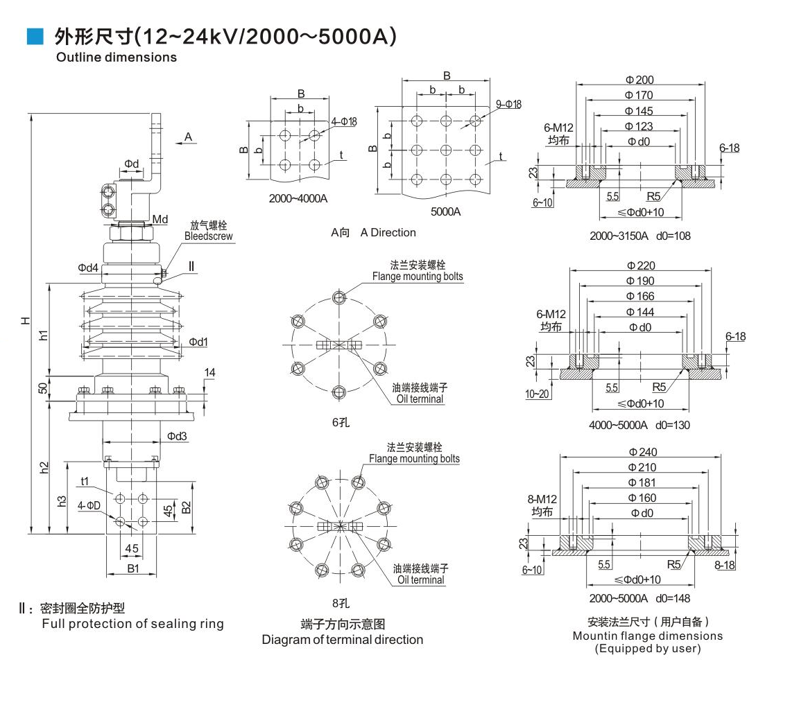 鋁法蘭瓷套管12~24kV/2000~5000A穿桿式套管
