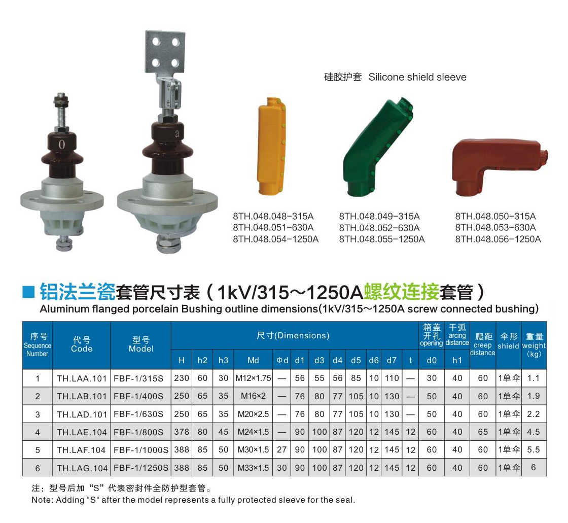 鋁法蘭瓷套管1kV/315~1250A螺紋連接套管