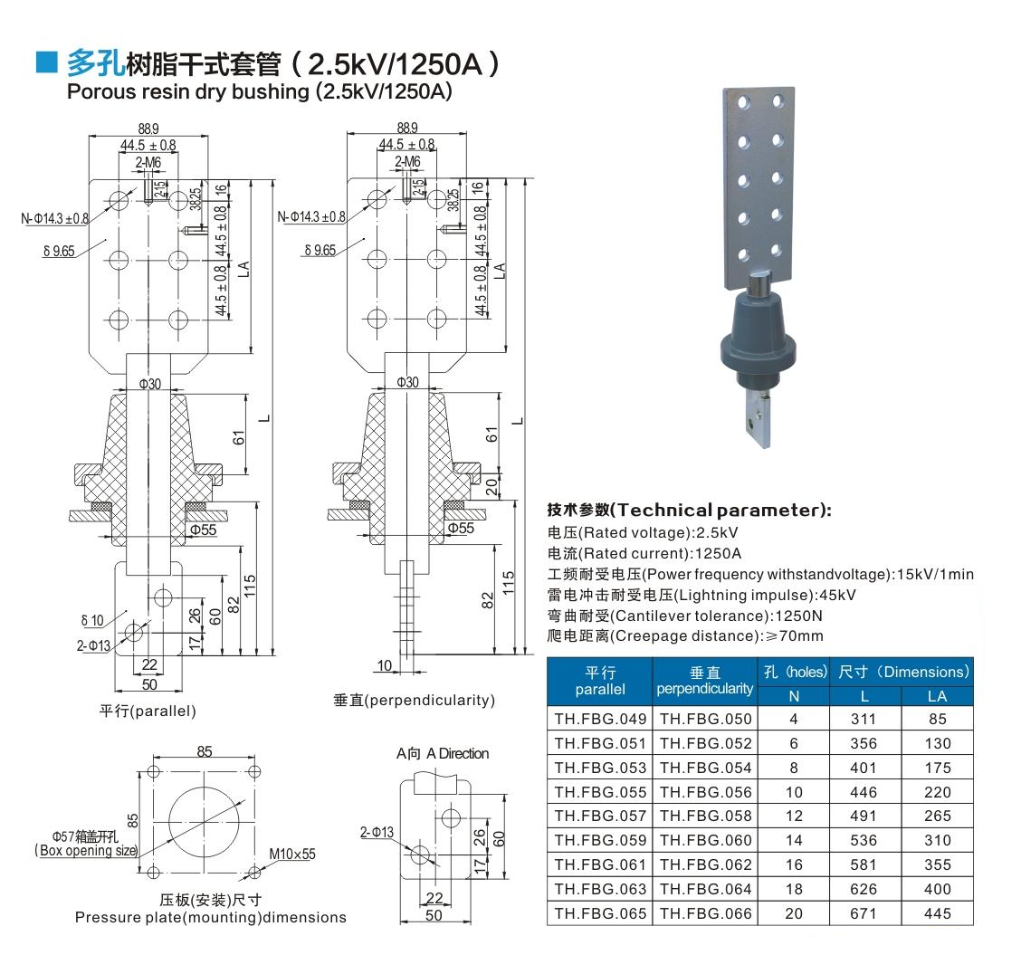 多孔樹(shù)脂干式套管2.5kV/1250A