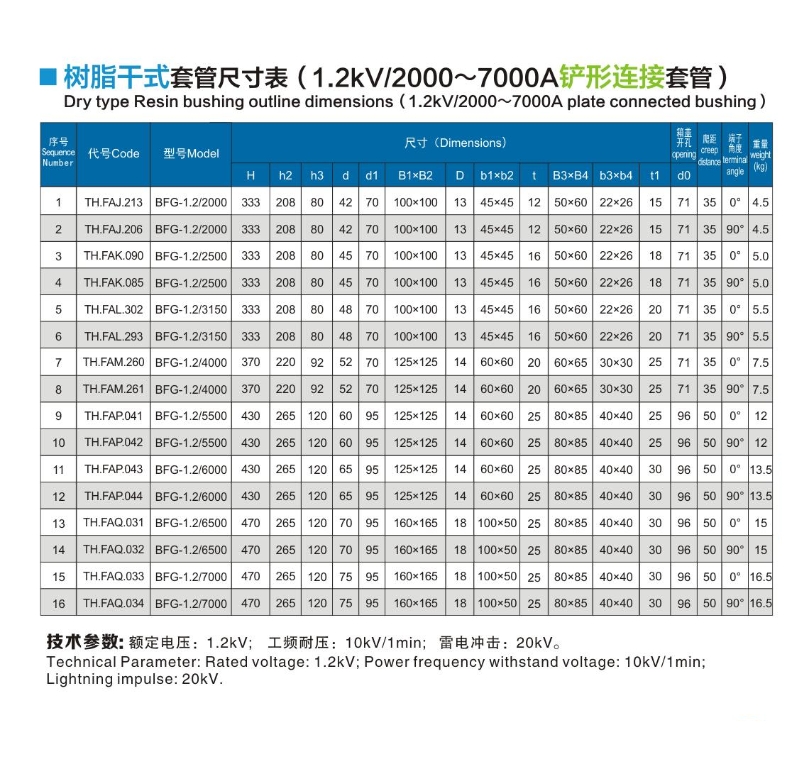 樹脂干式套管1.2kV/2000~7000A鏟形連接套管