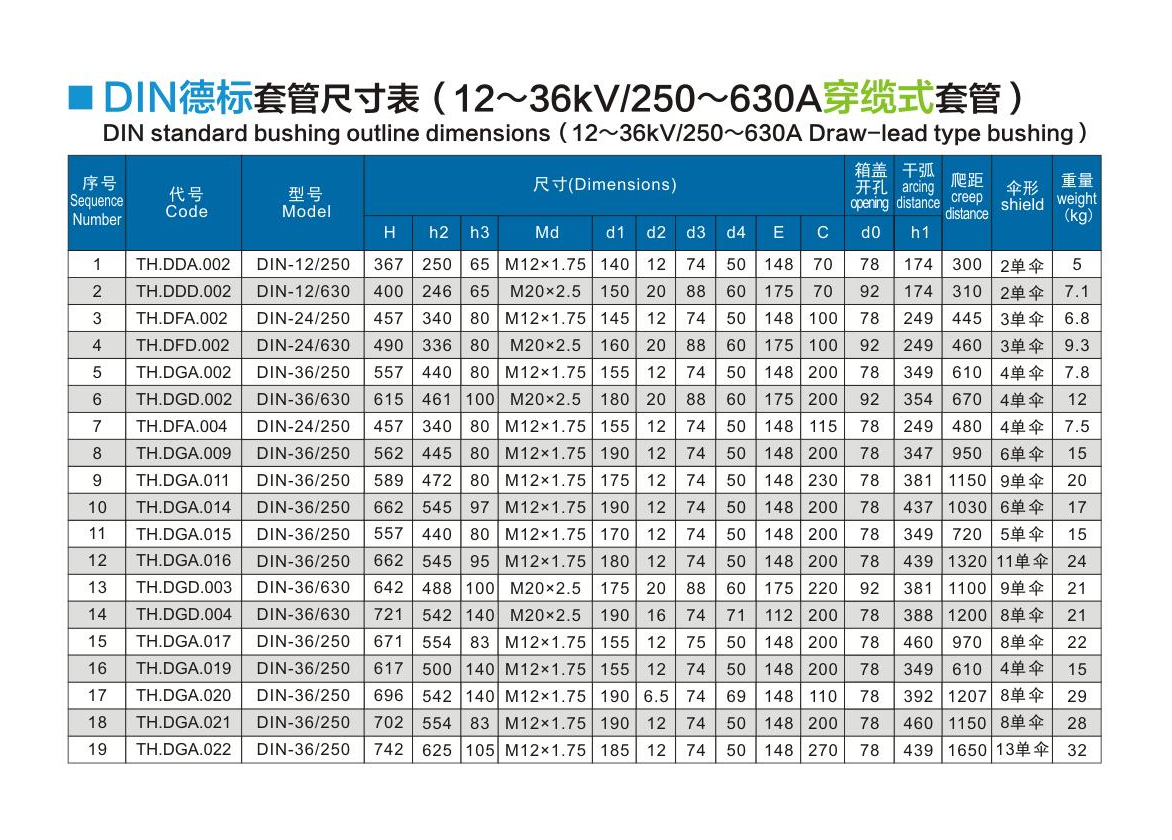 DIN德標(biāo)套管12~36kV/250~630A穿纜式套管