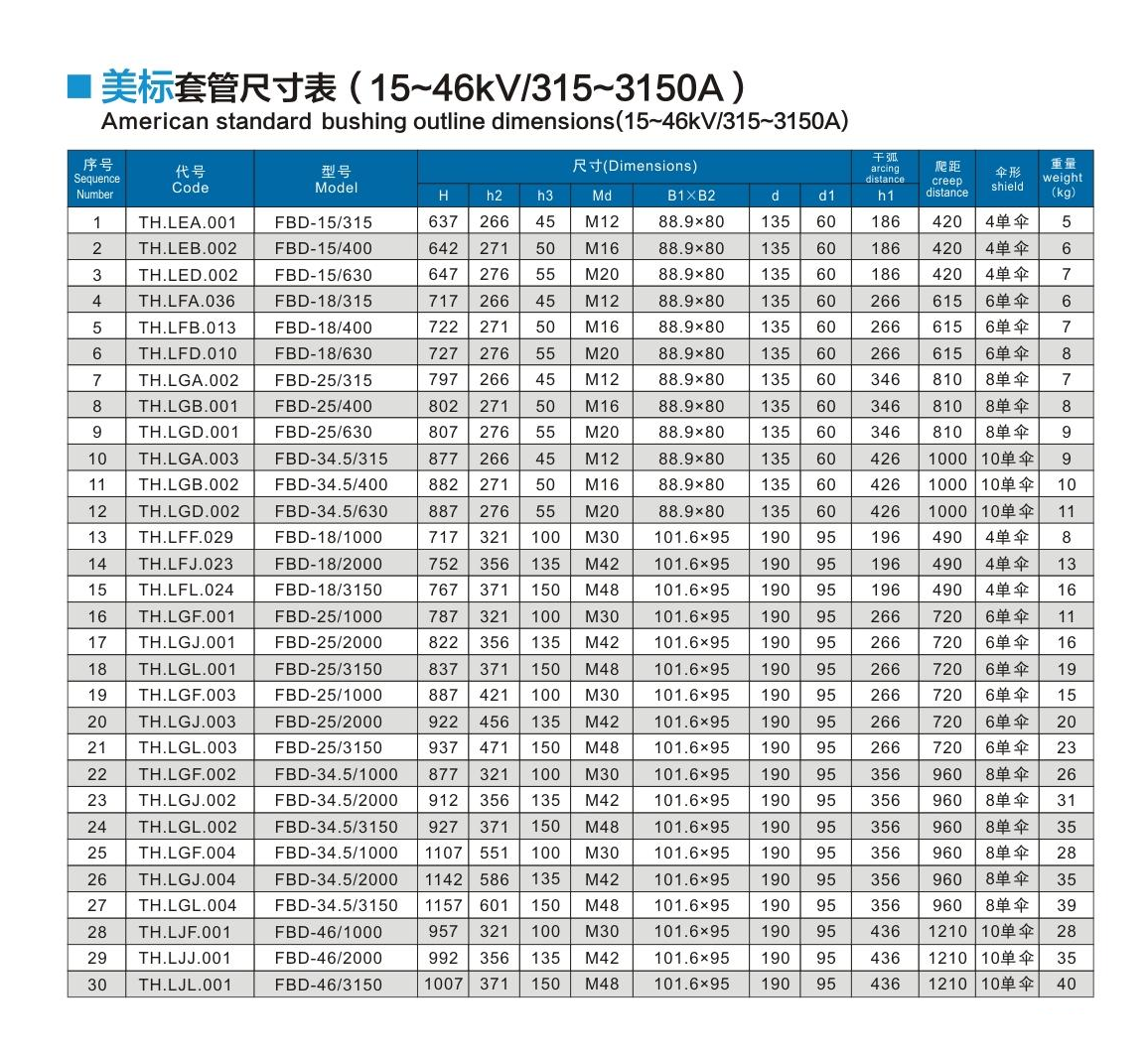 美標套管15~46kV/315~3150A