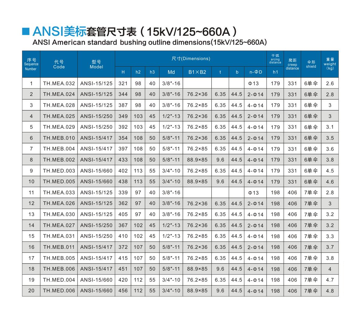 ANSI美標套管15kV/125~660A