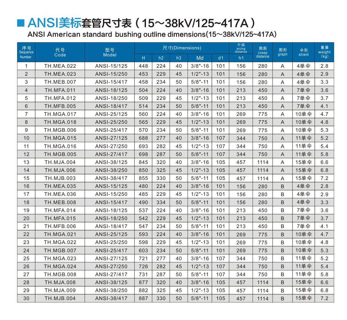 ANSI美標套管15~38kV/125~417A
