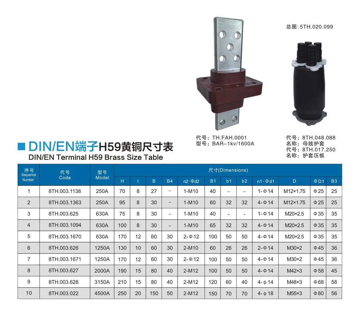 DIN/EN端子H59黃銅尺寸表
